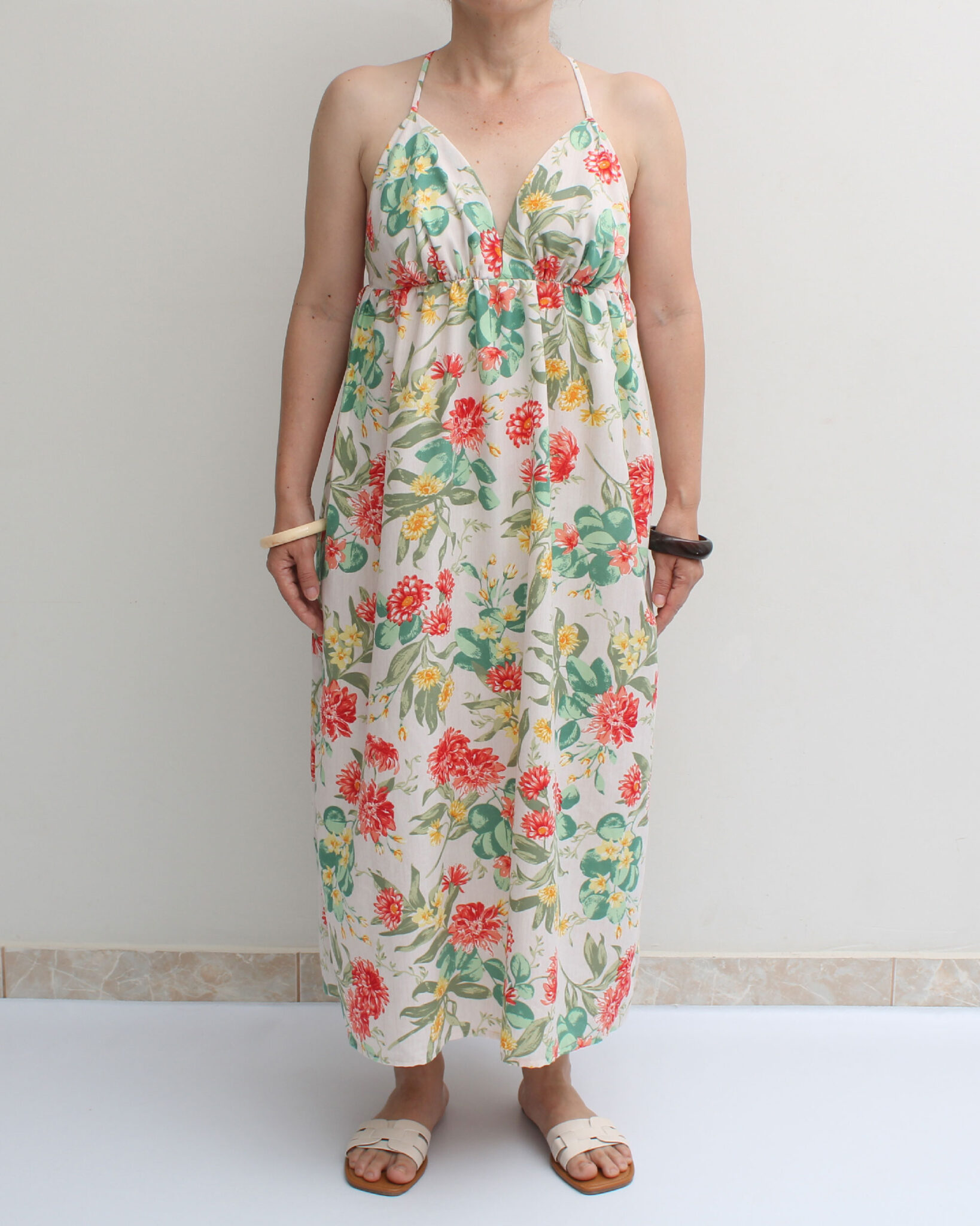 Sé el primero en valorar “Vestido de chalis hindu estampado beige”