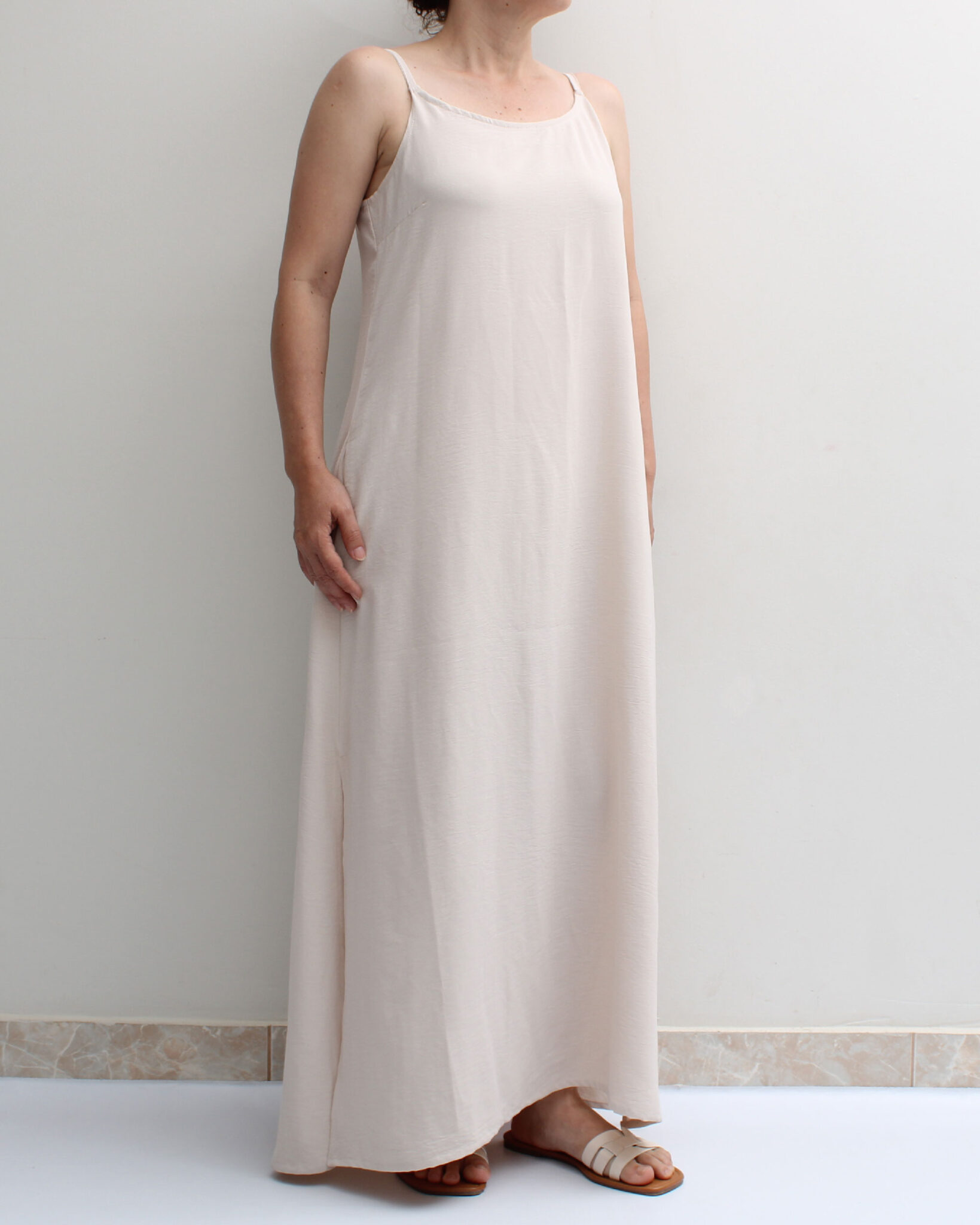 • Hecho con viena color beige, tela poliéster con propiedades elásticas y buena caída.